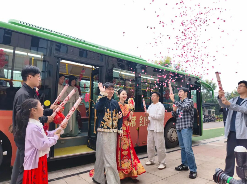 公交婚车让文明迎亲诠释别样浪漫。