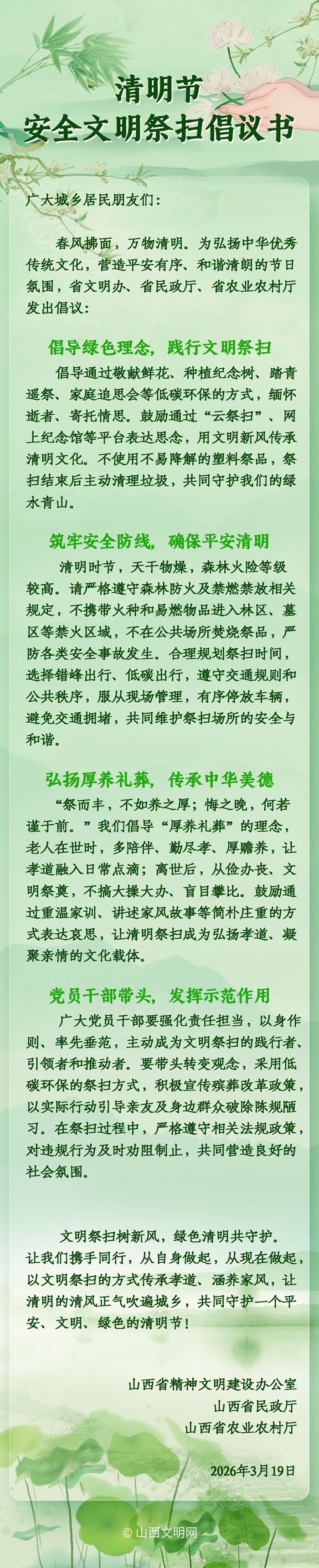 山西发布2026年清明节安全文明祭扫倡议书-中国文明网