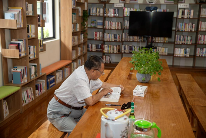 7月24日,正在湖北省荆门市掇刀区白庙街道月亮湾社区党员群众服务中心里休闲娱乐的社区居民。新华网 钟奕 摄