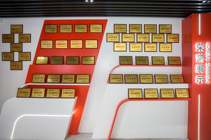 7月24日,湖北省荆门市东宝区新时代文明实践云平台陈列的近年来获得的各类荣誉。新华网 钟奕 摄