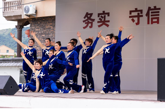 8月31日,浙江省台州市临海市白水洋镇桃源村的舞蹈队正在进行表演。新华网 钟奕 摄