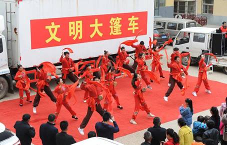 “文明大篷车”是志丹县一个响当当的志愿服务品牌。志丹县新时代文明实践中心主任高昀说,“文明大篷车现在有多光鲜,起步就有多尴尬。”一开始,台上演员比台下观众多。如何打开群众心房?高昀和同事们走村访户,改变了宣讲时间和地点,走进村头集市、传统节日活动、表彰活动、新婚现场等,得到群众热情围观。