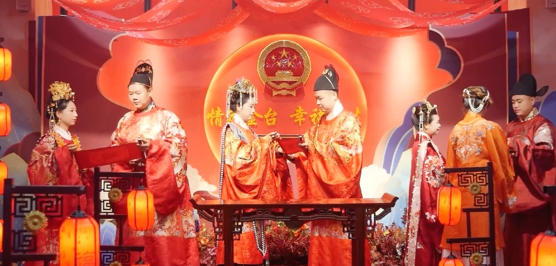 婚俗改革是移风易俗的重要内容之一。金台区将婚俗改革与乡村振兴深度融合,顺应民情民意,推动乡风文明。今年以来,金台区组建了婚改政策宣讲平台,成立了由各界优秀女性组成的“巾帼志愿宣讲分队”,她们走进家庭、社区、村庄、军营、机关和企业开展“六进”活动,传播婚俗改革的新理念;全力打造婚姻文化馆和婚姻文化长廊等设施,让群众在生活中更好地感受到婚姻的美好和责任。此外,金台区组织开展新型婚育文化、新时代家庭观宣传,定期举办“幸福婚姻”等公益讲座和好家风、好家训宣讲会,每周开展一次线上直播,大力普及婚俗改革政策和优秀婚俗文化,推动移风易俗深入人心。