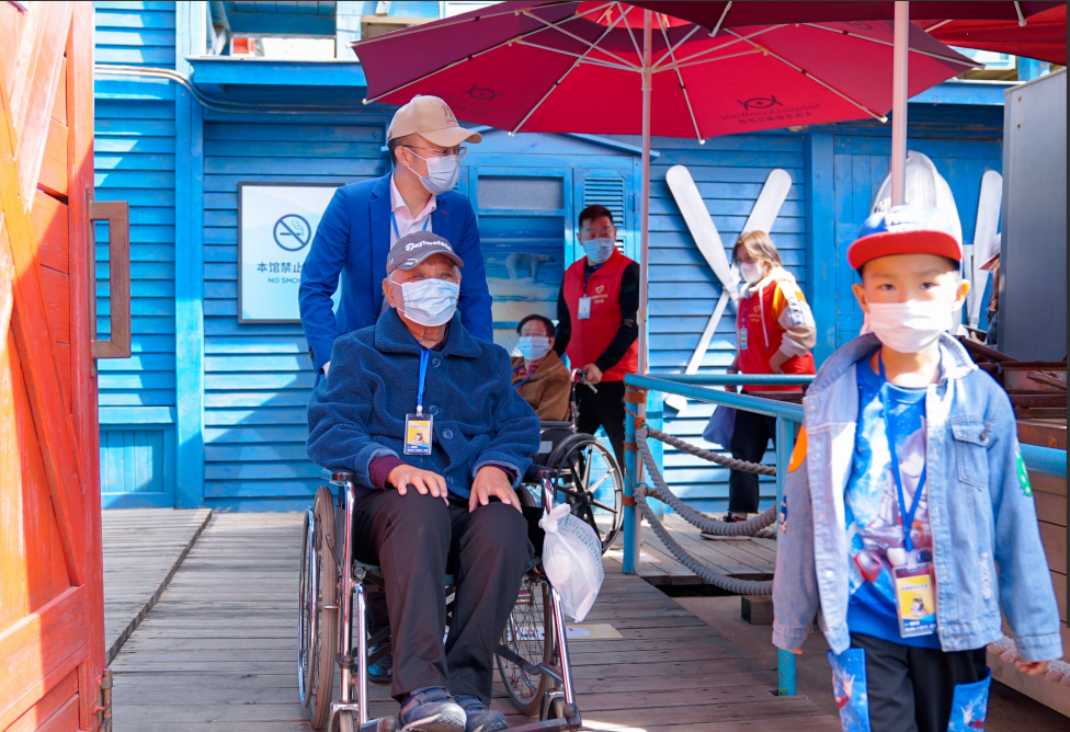 王官升帮助老兵做完眼睛复明手术后,带夫妇二人游览大连。(图片来源:王官升)