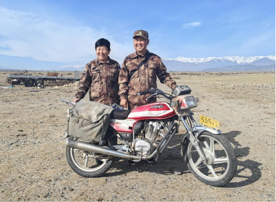 清晨,夫妻俩会骑着摩托车巡边,查看边境设施是否完好,有没有异常情况。“那时条件艰苦,巡边全靠骑马,一来一回就要整整一天,喝水吃饭都不容易。”欧龙巴依尔说:“现在条件太好了,骑摩托车巡边只要几个小时,执勤房里还有电视、自来水,手机还能上网。”曾经的青葱少年如今已两鬓斑白,欧龙巴依尔已经在这里护边整整40年,但是为国家护边的心从未改变,除了每年抽几天去看看远在乌鲁木齐的女儿,夫妻俩几乎360天都在这里,就连过年也不例外。当被问道是否孤单时,欧龙巴依尔的妻子欧托哈笑着说:“我们这里有5个民族,经常一起唱唱歌、跳跳舞,大家都和亲人一样,开心的很。”在他们看来,守护好边境,就是守护好大家的家园。
