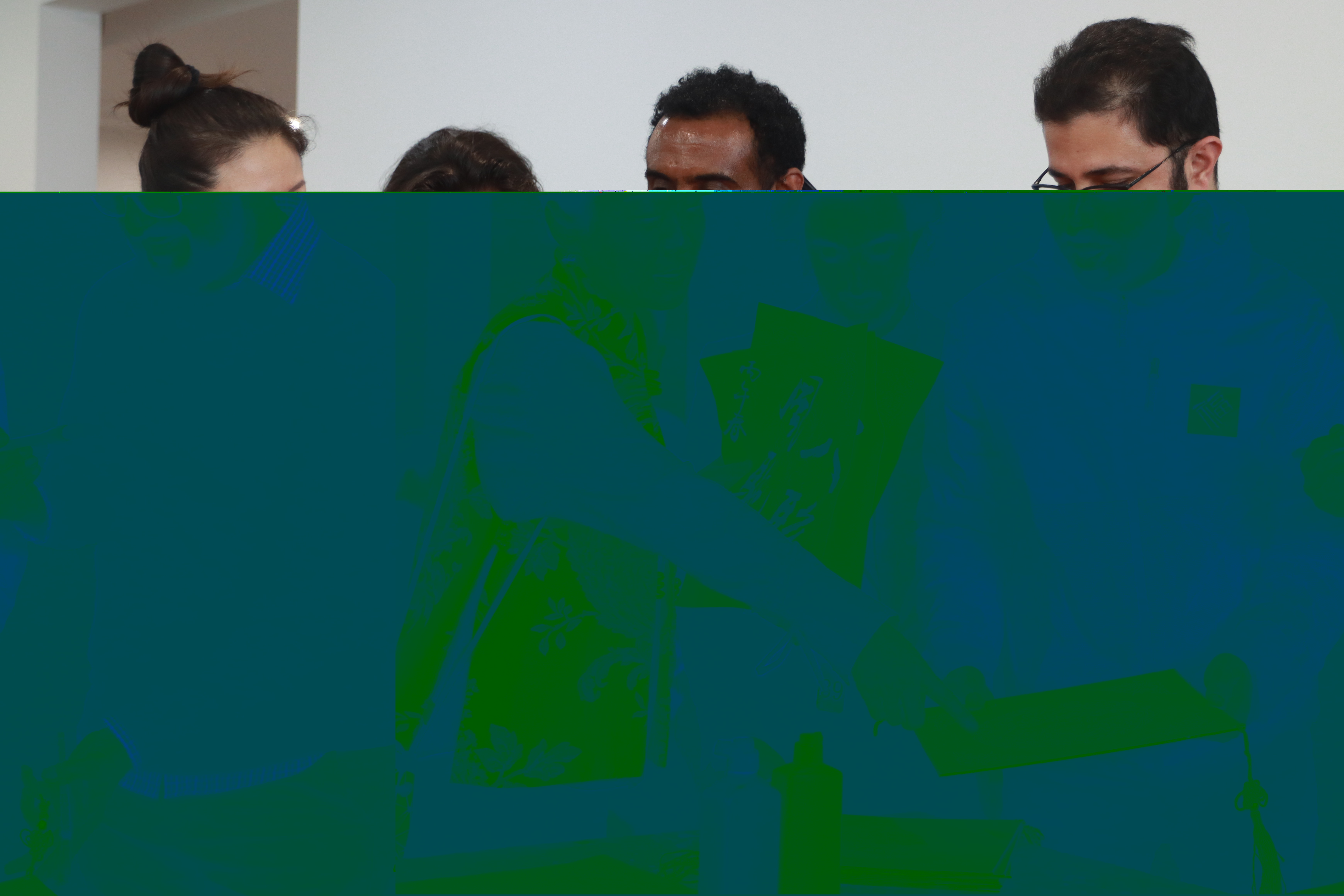 书法体验环节,嘉宾们正在互动交流。王泓凯 摄